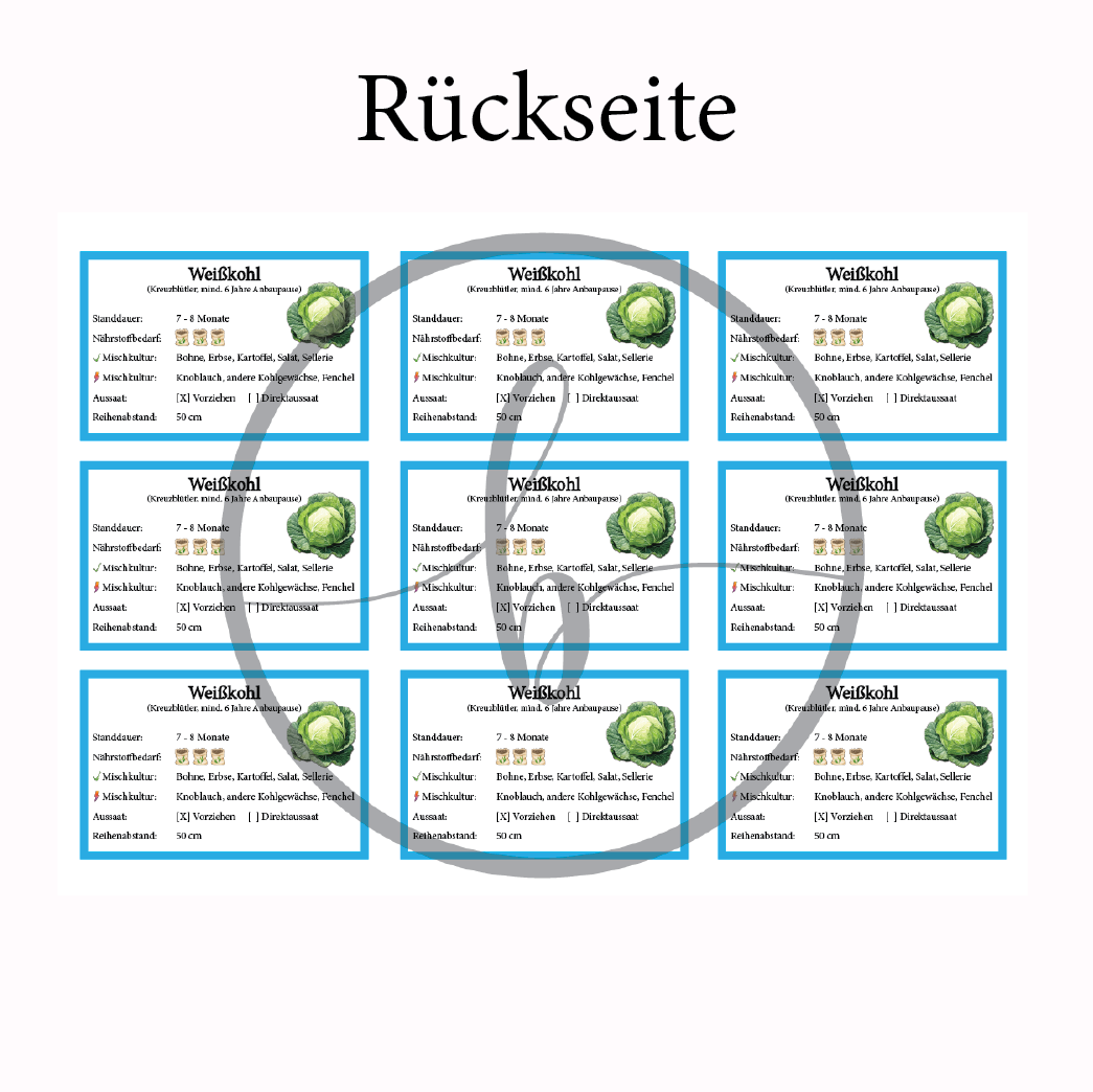 Denn auf der Rückseite findest alle Informationen, die du für deine Anbauplanung benötigst, während du auf der Vorderseite auf den ersten Blick siehst, was für ein Gemüse du da vor dir hast.
